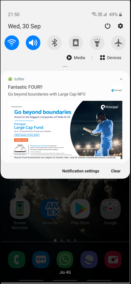 - Moment Marketing- IPL 2020 Moment Marketing in the form of Android App Notification Campaigns via Tuttler from Mobinet Media.