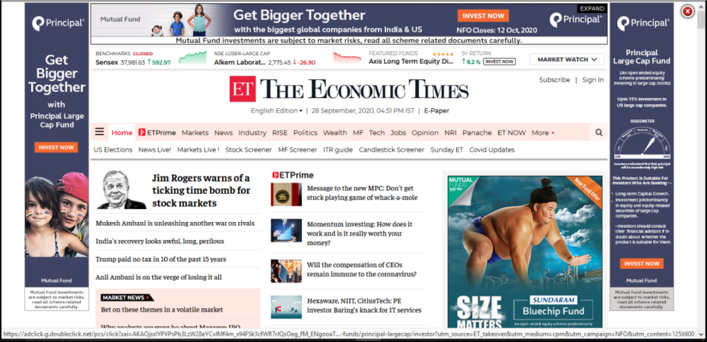 Roadblocks and site takeovers on major financial websites like Moneycontrol, BusinessStandard, Bloomberg Quint, Economic Times, Financial Express among others was the key to spread awareness and drive the correct set of audiences to the landing page. Audiences with an affinity towards mutual funds were being targeted heavily via various platforms. Banners on industry portals like Advisorkhoj and Cafemutual were also an add on to drive traffic to transact.