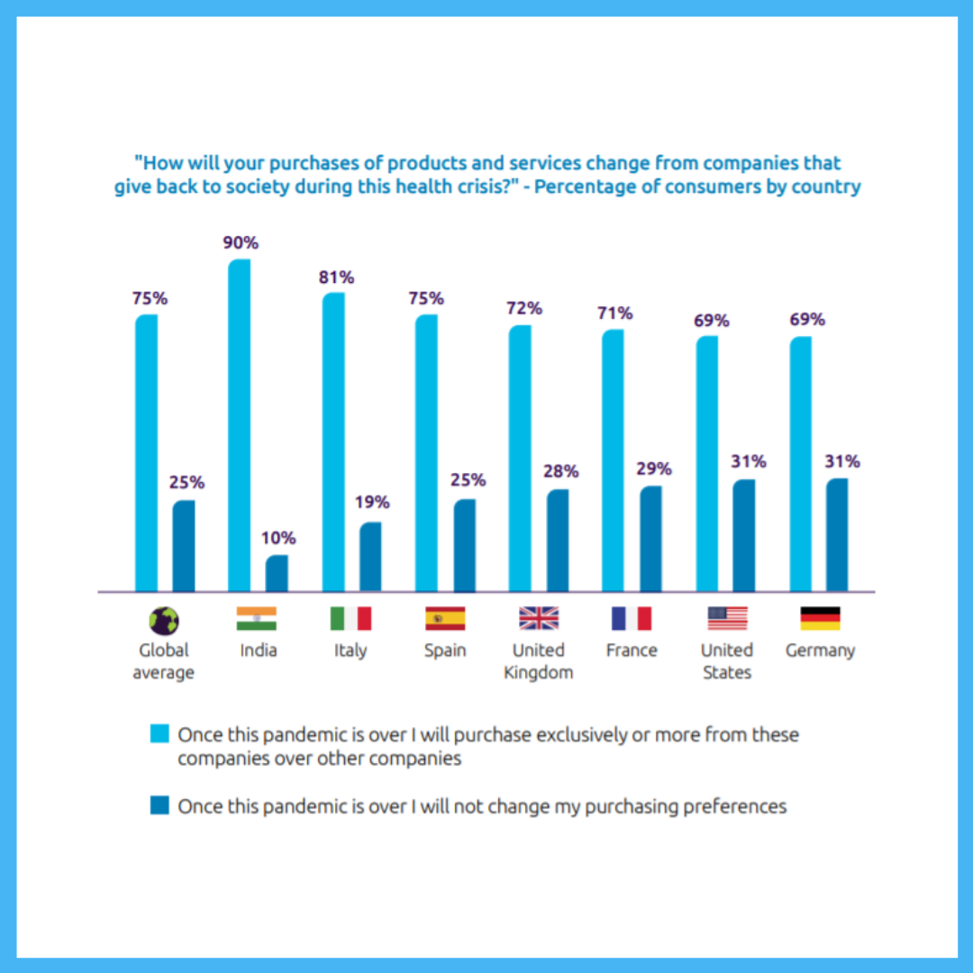 · 90 % of Indian consumers will purchase products and services from companies that give back to society during this health crisis compared to 75% of global consumers
